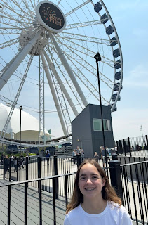 Our first stop was Navy Pier. Lainey and I had visited Chicago a few months earlier, but the pier was closed that day due to high winds. Lainey found it ironic—Navy Pier, in the windiest part of the Windy City, shut down because of wind! But this time, we lucked out. The weather was perfect, and the breeze was just right. We rode the Ferris wheel, Tower Drop, swings, and a few other rides before heading to the Ice Cream Museum.